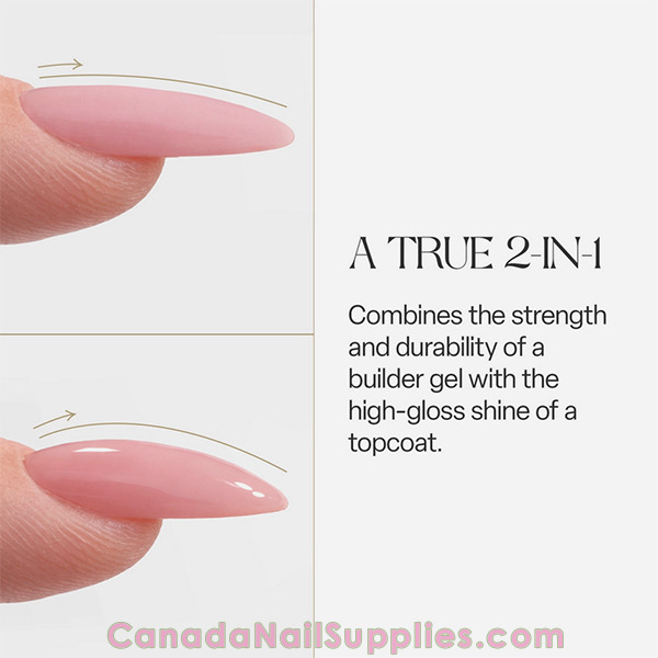 - 2-in-1 builder gel and non-wipe topcoat in one step