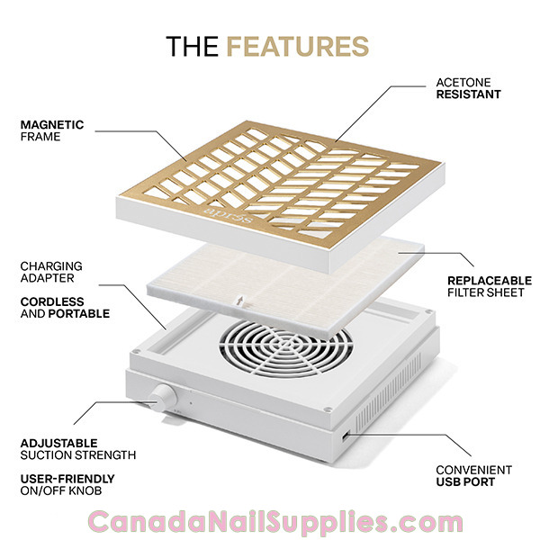 The rechargeable and cordless design make it easy to move between manicure ad pedicure stations while the acetone-resistant coating and USB charging port provide additional convenience. For the busy nail professional, the Apres Dust Collector is the ultimate tool for maintaining a clean and professional workspace.