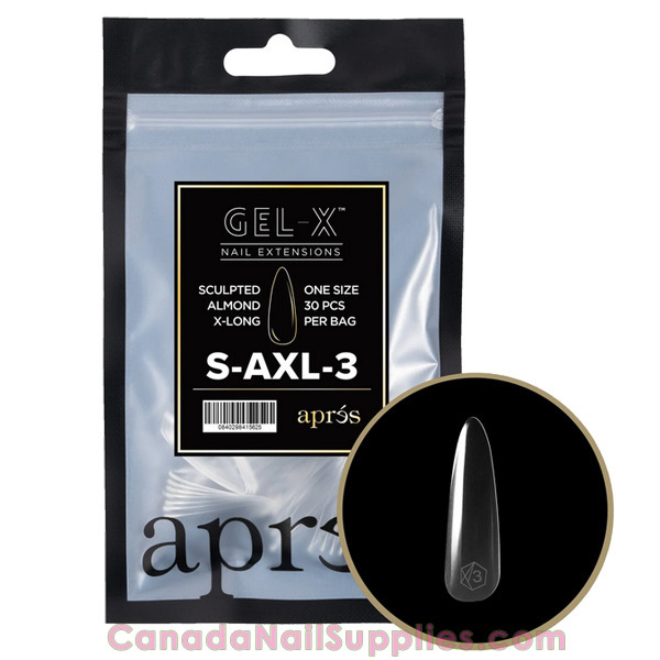 Each Apres 2.0 Sculpted Almond Extra Long- Gel-X Refill Bag contains 30 pieces of one size.