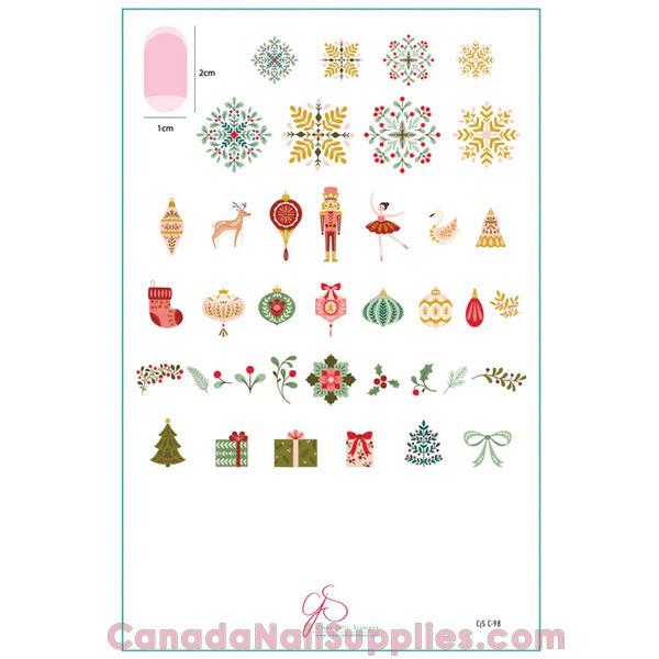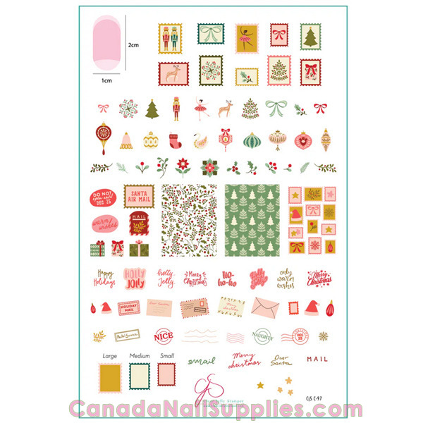 This pretty, vintage feeling plate is perfect for romantic holiday nails. Peace, love and joy with delicate gift images, florals and greenery.