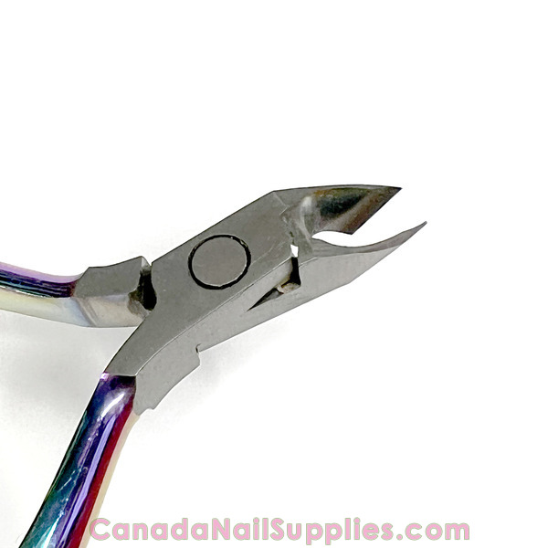 High-quality rainbow cuticle nipper with double spring action and long ergonomic handles for a smooth, controlled, and comfortable cutting experience.