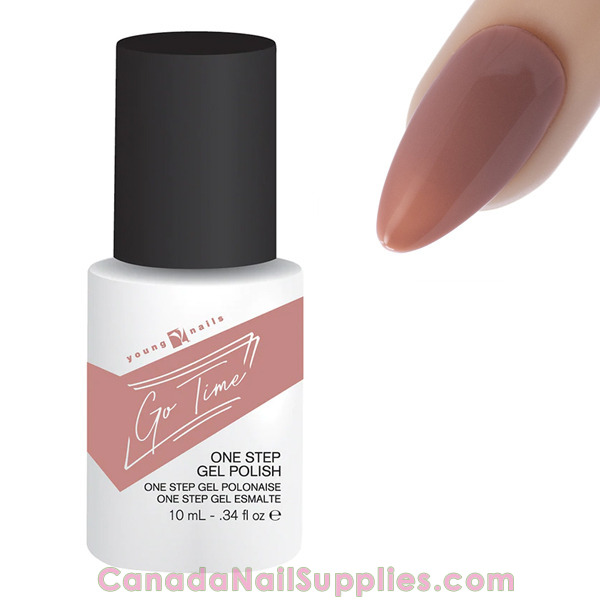 Apply a thin coat of Young Nails Go Time Color to nail. Cure in LED for one minute or Cure in UV for two minutes. Apply second coat if necessary. Go Time cures with a non tacky shiny layer.