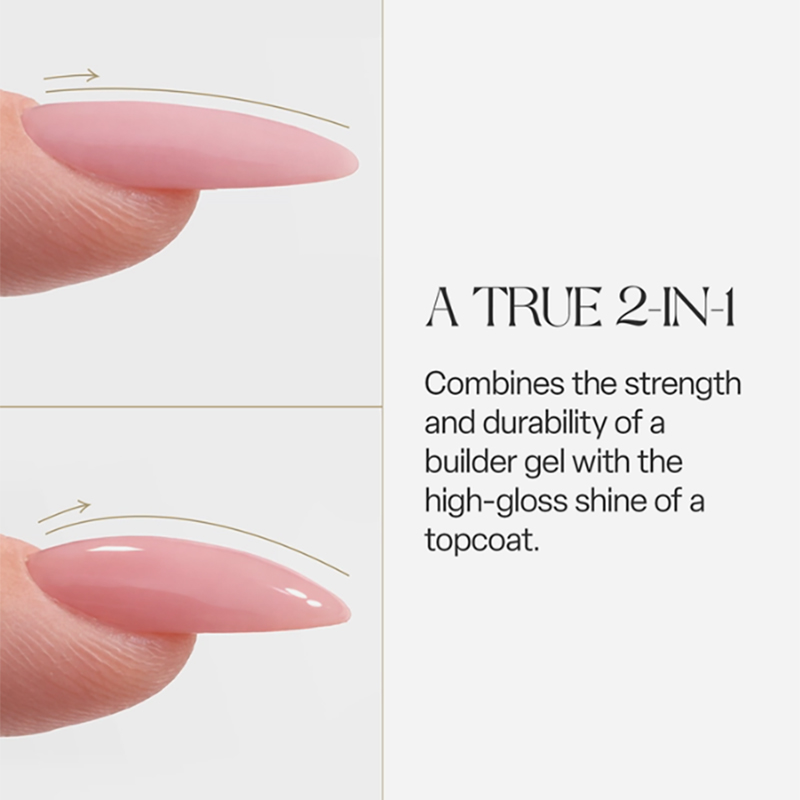 - 2-in-1 builder gel and non-wipe topcoat in one step
